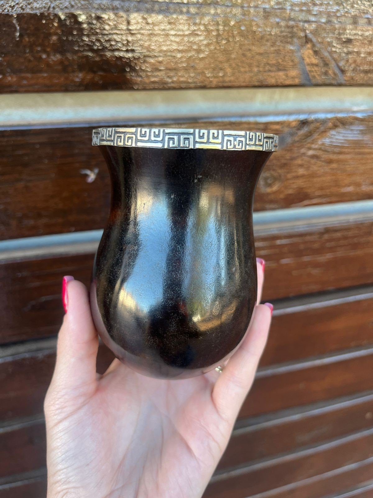 Cuia bago de touro, porongo selecionado com virola de alpaca.