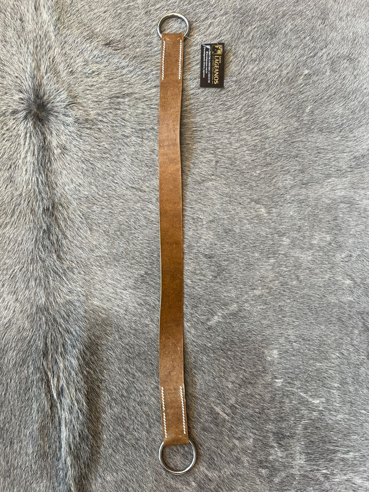 Sinchador em couro cru ponteado, argolas em inox.